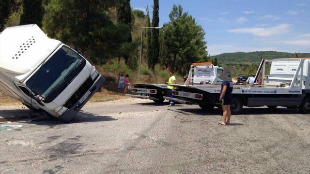 Στο τροχαίο ενεπλάκησαν ένα αυτοκίνητο και ένα φορτηγό ψυγείο, το οποίο μάλιστα ανετράπη κάτω από αδιευκρίνιστες συνθήκες.