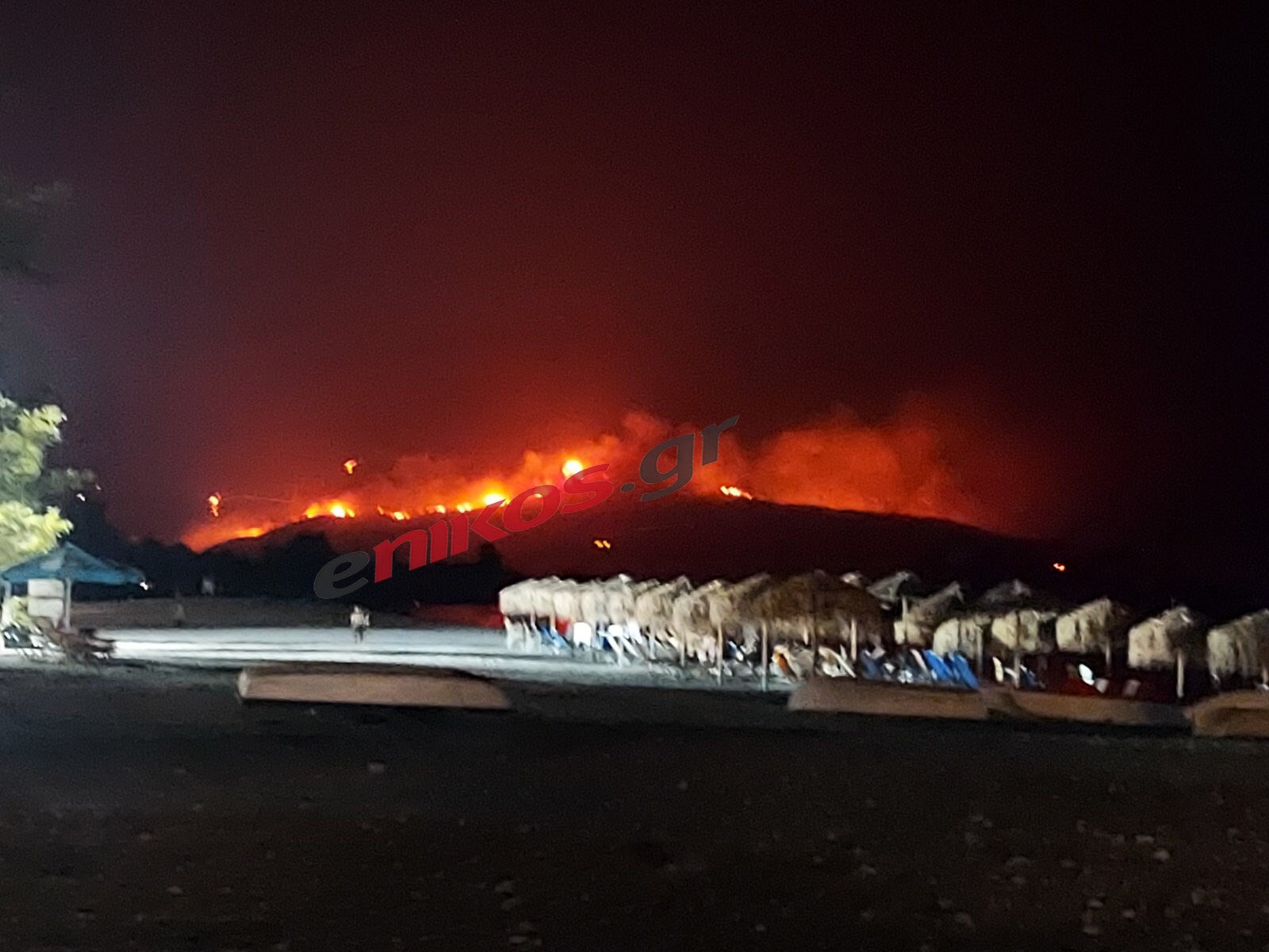 Μεγάλη και ανεξέλεγκτη είναι η φωτιά και στη Φωκίδα. Στις 22:10 εστάλη μήνυμα του 112 για εκκένωση του Τολοφώνα στην Ερατεινή, ενώ νωρίτερα, είχαν προηγηθεί οι εκκενώσεις της Ελαίας και της Καλλιθέας. Η φωτιά είχε κατεύθυνση προς τον Άγιο Σπυρίδωνα και οι αρχές κάλεσαν τους κατοίκους να εγκαταλείψουν τα σπίτια τους για προληπτικούς λόγους. Διακοπή της ηλεκτροδότησης υπάρχει στον παραλιακό οικισμό Άγιος Νικόλαος. Ο Αντιπεριφερειάρχης Φωκίδας μίλησε για ανεξέλεγκτη φωτιά, ενώ ανέφερε ότι κάηκαν σπίτια τόσο στην Ελαία όσο και στην Καλλιθέα.