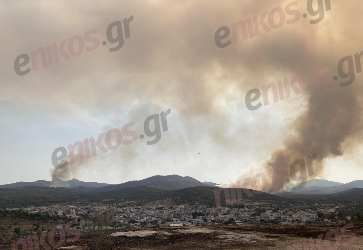 Ειδικότερα, η φωτιά μαίνεται ανεξέλεγκτη και έχει επεκταθεί από τη Βλυχάδα μέχρι το Κανδήλι Μάνδρας, ενώ στην περιοχή του Αγίου Σωτήρα οι φλόγες έχουν φτάσει σε σπίτια με την κατάσταση να κρίνεται εξαιρετικά δύσκολη.