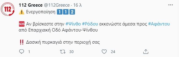 Σε συναγερμό για τη φωτιά στη Ρόδο