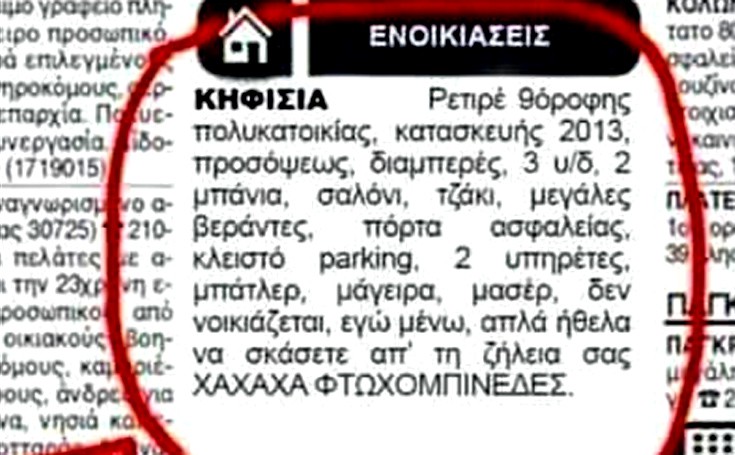 Δείτε κάποιες από τις αγγελίες που δημοσιεύτηκαν και προκάλεσαν… γέλια.