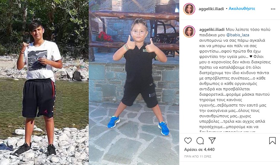 “Μου λείπετε τόσο πολύ παιδάκια μου, ανυπομονώ να σας πάρω αγκαλιά και να μπορώ και πάλι να σας φροντίσω…αφού πρώτα θα έχω φροντίσει την υγεία μου… Φίλοι μου ο κορονοϊος δεν κάνει διακρίσεις πρέπει να καταλάβουμε ότι όλοι διατρέχουμε τον ίδιο κίνδυνο πάντα με απρόβλεπτες συνέπειες….ο κάθε άνθρωπος ο κάθε οργανισμός αντιδρά και προσβάλλεται διαφορετικά…φοράμε μάσκα παντού τηρούμε τους κανόνες υγιεινής…σεβόμαστε τον εαυτό μας την οικογένεια μας…όλους τους συνανθρώπους μας…χωρίς υπερβολές …τρέλα και άγχος απλά προσέχουμε….μπορούμε και να δουλεύουμε μπορούμε και να διασκεδάζουμε…μπορούμε να κάνουμε τα πάντα με προσοχή και σεβασμό…λίγους μήνες πίσω θυμάμαι δεν το πίστευα …η έστω πίστευα ότι είναι κάτι απλό δίχως σημασία… κάτι που δεν αποτελεί κίνδυνο…έχουν περάσει 12 μέρες από τότε που νόσησα…12 πολύ δύσκολες ημέρες για μένα…στις 24 του μήνα την Δευτέρα βγήκα θετική στον COVID…το διαισθανόμουν πριν πάρω τα αποτελέσματα γιατί αυτό που ένιωθα έχοντας όλα τα συμπτώματα ήταν υπερβολικά δυσάρεστο και καθόλου φυσιολογικό…και αναμφισβήτητα επικίνδυνο…είναι ευλογία να νιώθεις να αισθάνεσαι υγιής…να αναπνέεις δίχως δυσκολία…να γελάς να χαίρεσαι την ζωή…θλίβομαι για όλους τους συνανθρώπους μου που ταλαιπωρούνται από τον ιό…είτε πιο βαριά είτε πιο ήπια…θλίβομαι για τους συνανθρώπους μου που μετά από τόσους θανάτους δεν συμμορφώνονται με τα μέτρα…δεν προσέχουν δεν προστατεύουν και δείχνουν τόσο προκλητικά την ανευθυνότητα και την αδιαφορία τους…ας σεβαστούμε το δώρο της ζωή λίγο παραπάνω….για το καλό όλων….σας ευχαριστώ όλους για το ενδιαφέρον την αγάπη σας και τα μηνύματα συμπαράστασης”.