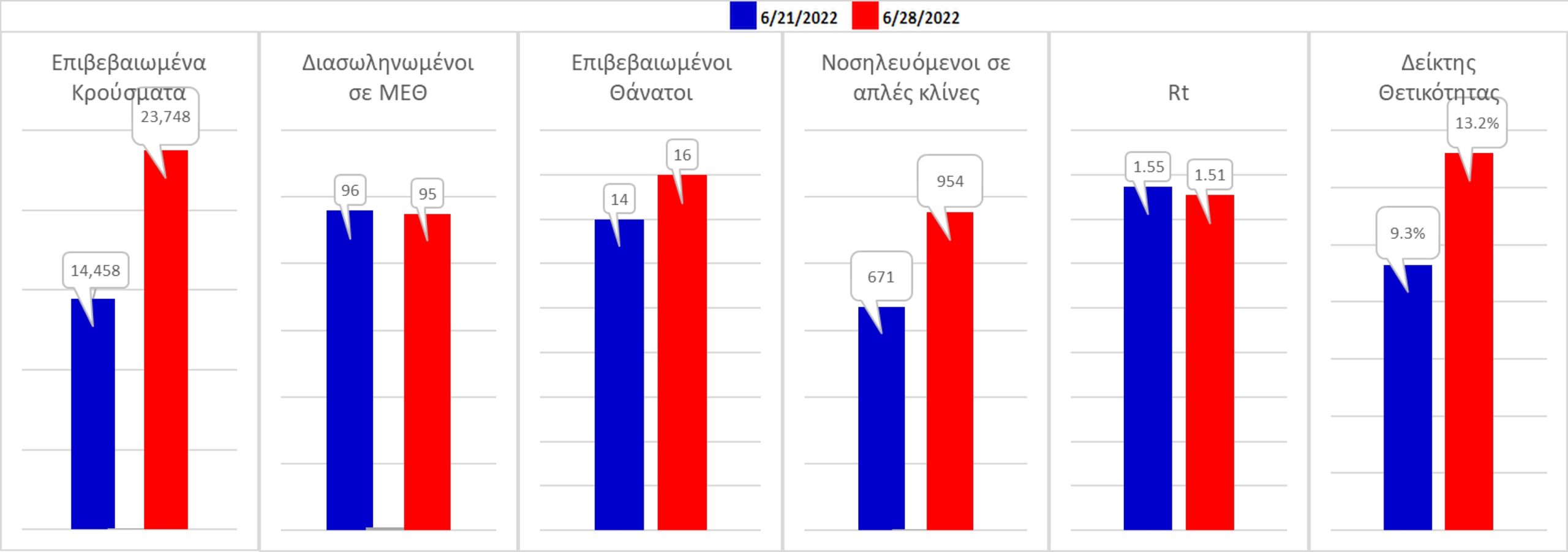 Σχήμα 59. Συγκριτικά αποτελέσματα της επιδημιολογικής εικόνας της χθεσινής Τρίτης (28/06/2022) σε σχέση με την προηγούμενη (21/06/2022)