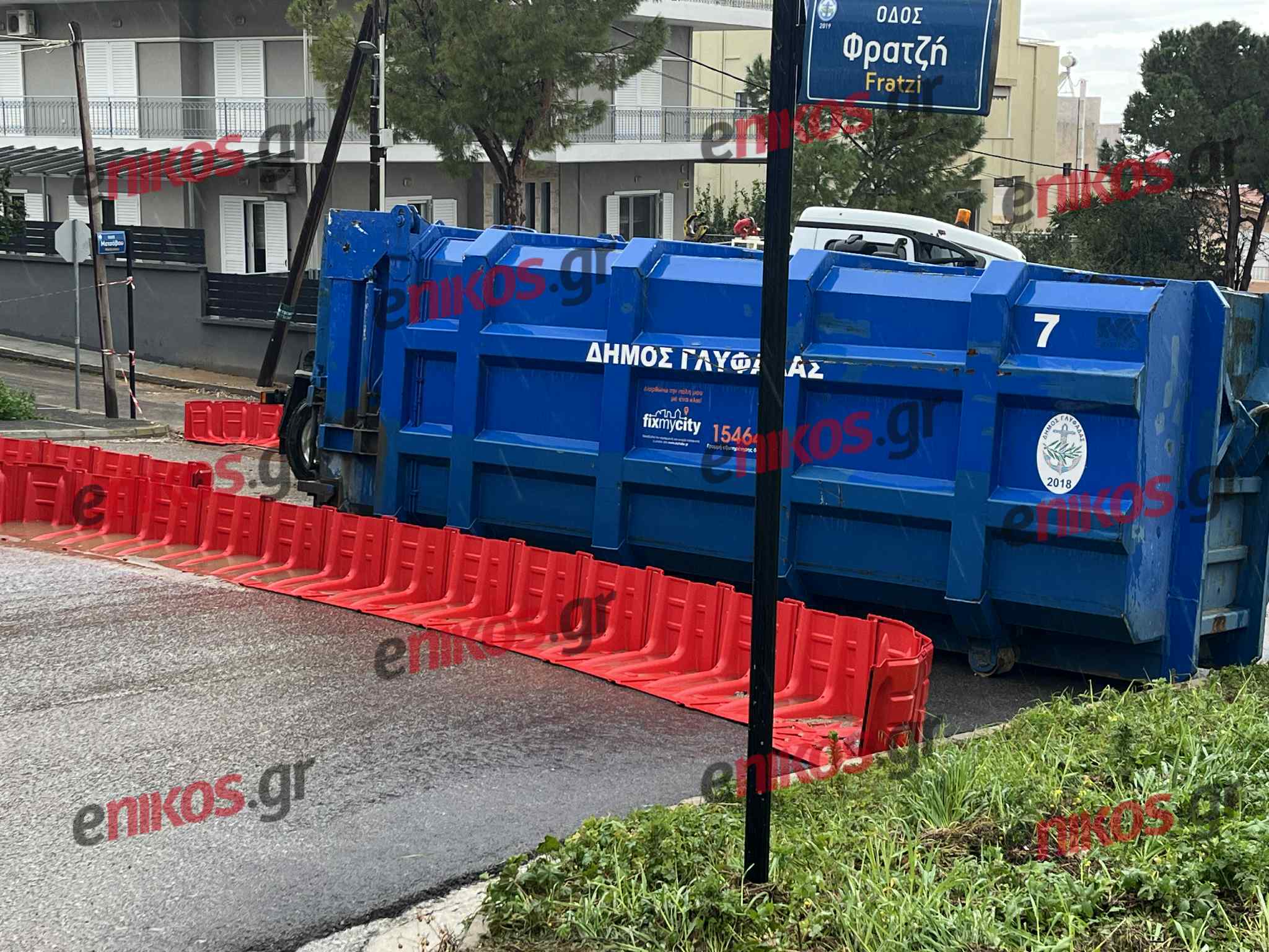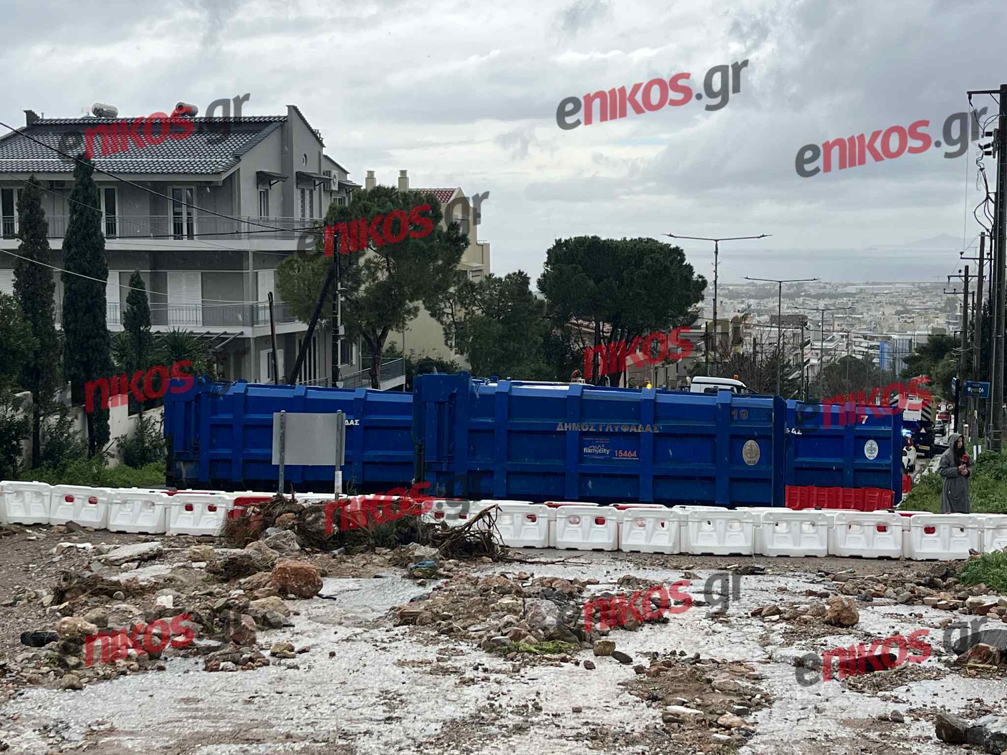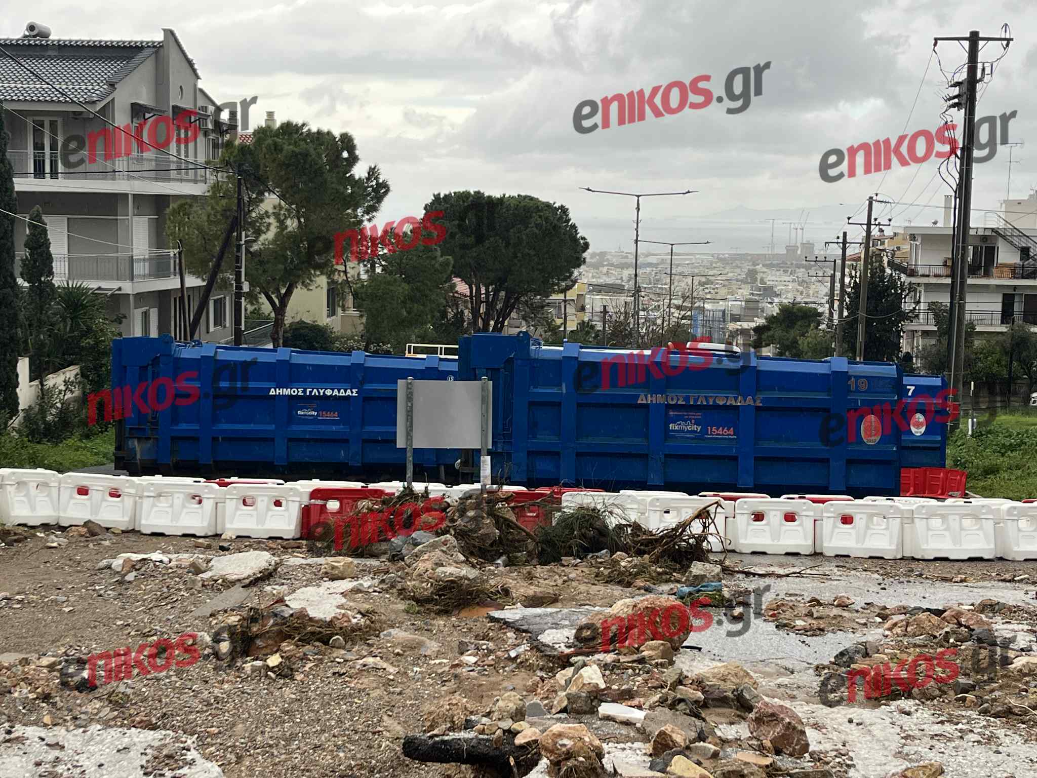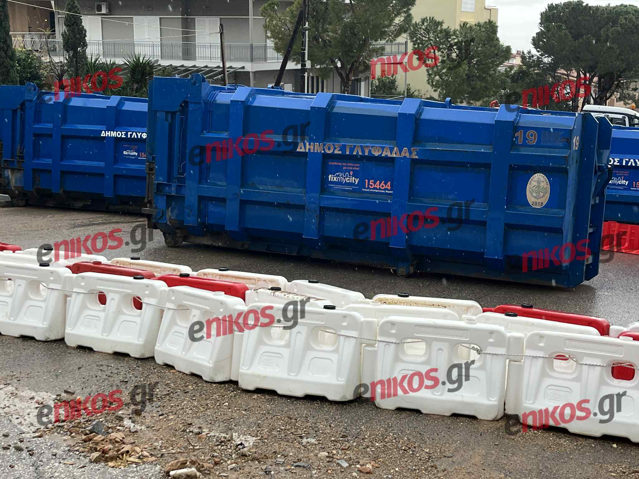 Προληπτικά μέτρα για την νέα κακοκαιρία που βρίσκεται σε εξέλιξη έλαβε ο δήμος στην Άνω Γλυφάδα, τοποθετώντας κοντέινερ στην αρχή της οδού Μετσόβου, ώστε να περιοριστεί η μεταφορά φερτών υλικών προς τον αστικό ιστό.
