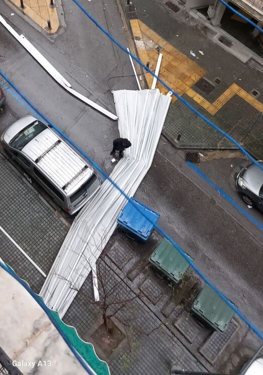 Θυελλώδεις είναι οι άνεμοι που πνέουν στη Θεσσαλονίκη, με τον Βαρδάρη να «σαρώνει» πολλά σημεία στο πέρασμά του. Χαρακτηριστική είναι η περίπτωση μιας τεράστιας τέντας στο κέντρο της πόλης, η οποία ξηλώθηκε από ταράτσα πολυκατοικίας, στην κυριολεξία «απογειώθηκε» και «προσγειώθηκε» στη μέση δρόμου, προκαλώντας φθορές σε δύο οχήματα, ενώ από καθαρή τύχη δεν υπάρχει μέχρι στιγμής πληροφόρηση για κάποιο τραυματισμό.