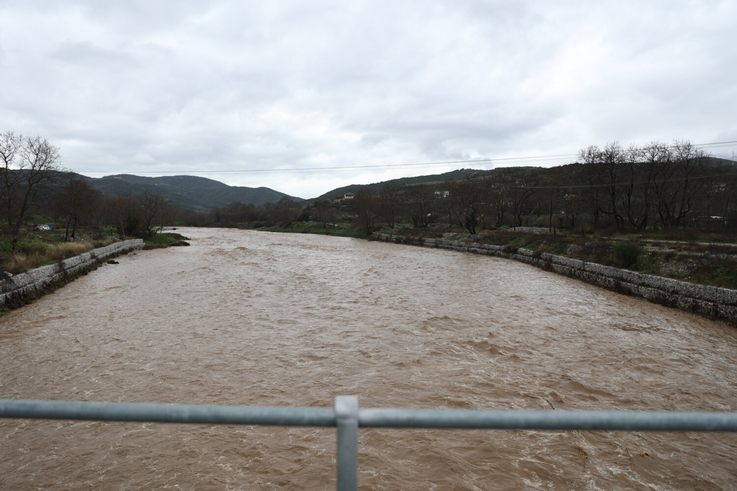Το ρέμα στον Αγιόκαμπο της Λάρισας έχει υπερχειλίσει και στο ύψος της γέφυρας Καλατράβα, περνά πλέον μέσα από επιχειρήσεις και ενοικιαζόμενα δωμάτια.