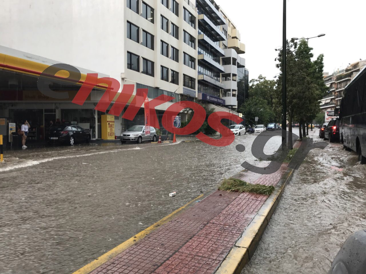 Στη συμβολή της Μιχαλακοπούλου με τη Μεσογείων, η σφοδρή καταιγίδα προκάλεσε σοβαρά προβλήματα στο σημείο.
