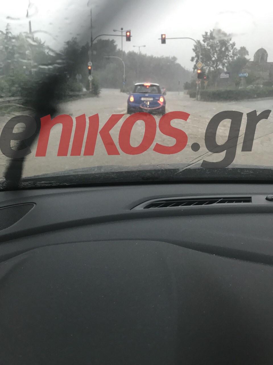 Οι δρόμοι πλημμύρισαν και μετατράπηκαν μέσα σε λίγα λεπτά σε ορμητικούς χειμάρρους, όπως βλέπουμε και στις φωτογραφίες από τη Λεωφόρο Βεΐκου, που έστειλε αναγνώστης του enikos.gr.