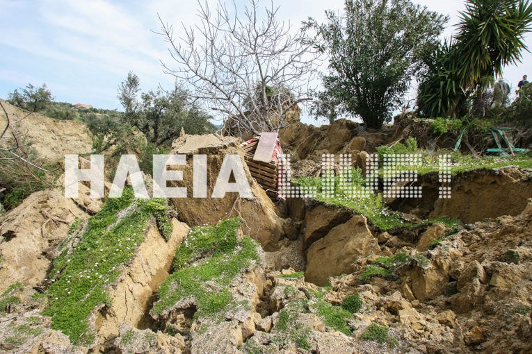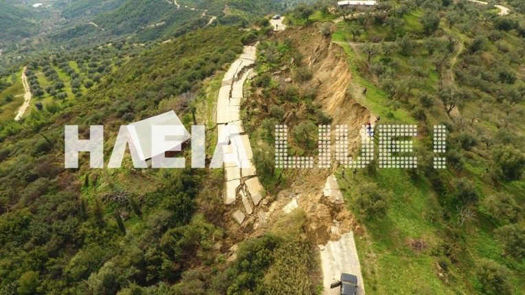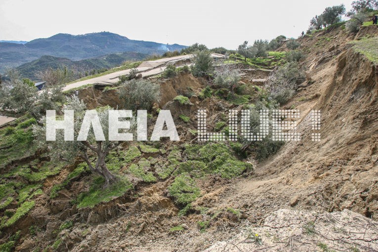 Ο δρόμος στην κορυφή του λόφου, υποχώρησε στις 11 το πρωί της Τετάρτης, έξι με εφτά μέτρα από την αρχική του θέση σε βάθος και περίπου 15 μέτρα παραπλεύρως. Ήταν το σημείο που άνοιξε η γη και υποχώρησε όλο το τμήμα μπροστά από τη ρηγμάτωση. Ο στάβλος που βρισκόταν εκεί «έφυγε» ακέραιος μαζί με το έδαφος, ενώ με μια προσεκτική ματιά στις φωτογραφίες της περιοχής, αντιλαμβάνεται κανείς πως η κατολίσθηση επεκτείνεται εκατοντάδες μέτρα από το συγκεκριμένο σημείο και έχει παρασύρει και άλλους – αγροτικούς – δρόμους στην περιοχή, καθώς επίσης λιοστάσια και άλλες εκτάσεις.