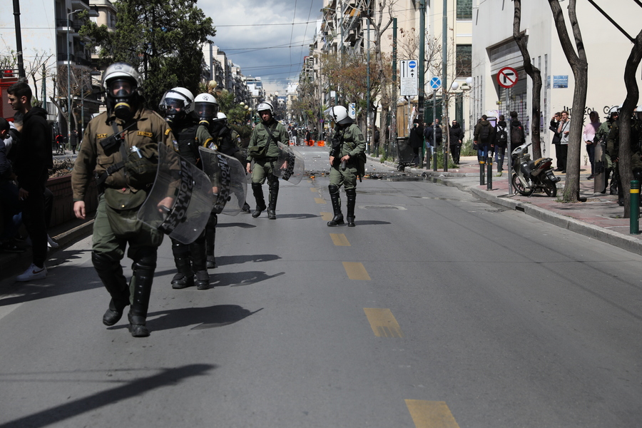 Όπως ανακοίνωσε επίσημα το αρχηγείο της ΕΛ.ΑΣ., περίπου 30 άτομα βγήκαν από την ΑΣΟΕΕ στις 2.30 το μεσημέρι της Πέμπτης (6/4) και έστησαν οδοφράγματα, βάζοντας φωτιά σε κάδους απορριμμάτων.