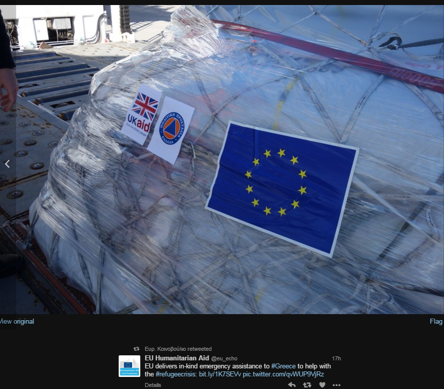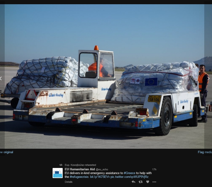 Έφτασε στην Ελλάδα ανθρωπιστική βοήθεια για την αντιμετώπιση της προσφυγικής κρίσης από την Ευρωπαϊκή Ένωση.