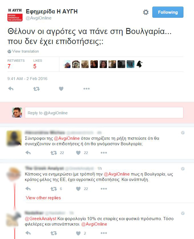 «Θέλουν οι αγρότες να πάνε στη Βουλγαρία… που δεν έχει επιδοτήσεις