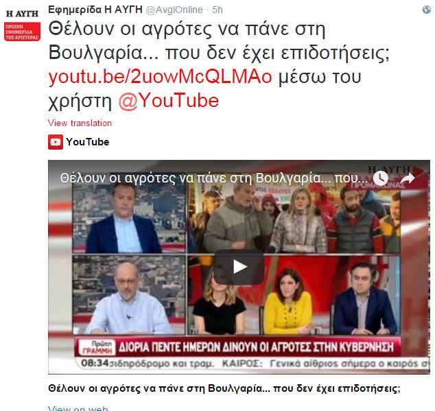 Συνέχεια ανάρτησε με το ίδιο σχόλιο βίντεο με δηλώσεις των αγροτών σε πρωινή ενημερωτική εκπομπή του ΣΚΑΪ.