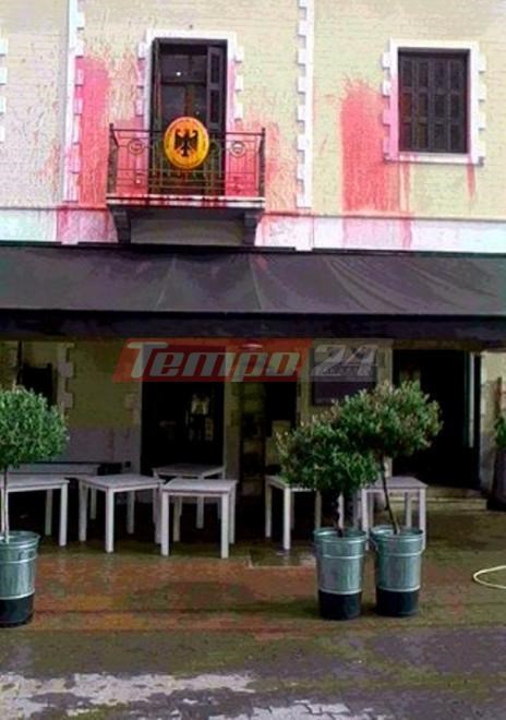 Αντιεξουσιαστές έριξαν κόκκινη μπογιά και έγραψαν συνθήματα στο Γερμανικό Προξενείο στην Πάτρα – ΦΩΤΟ