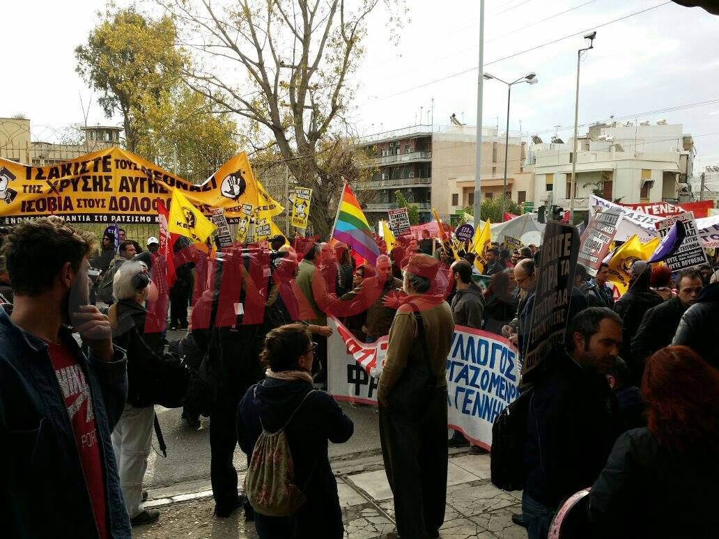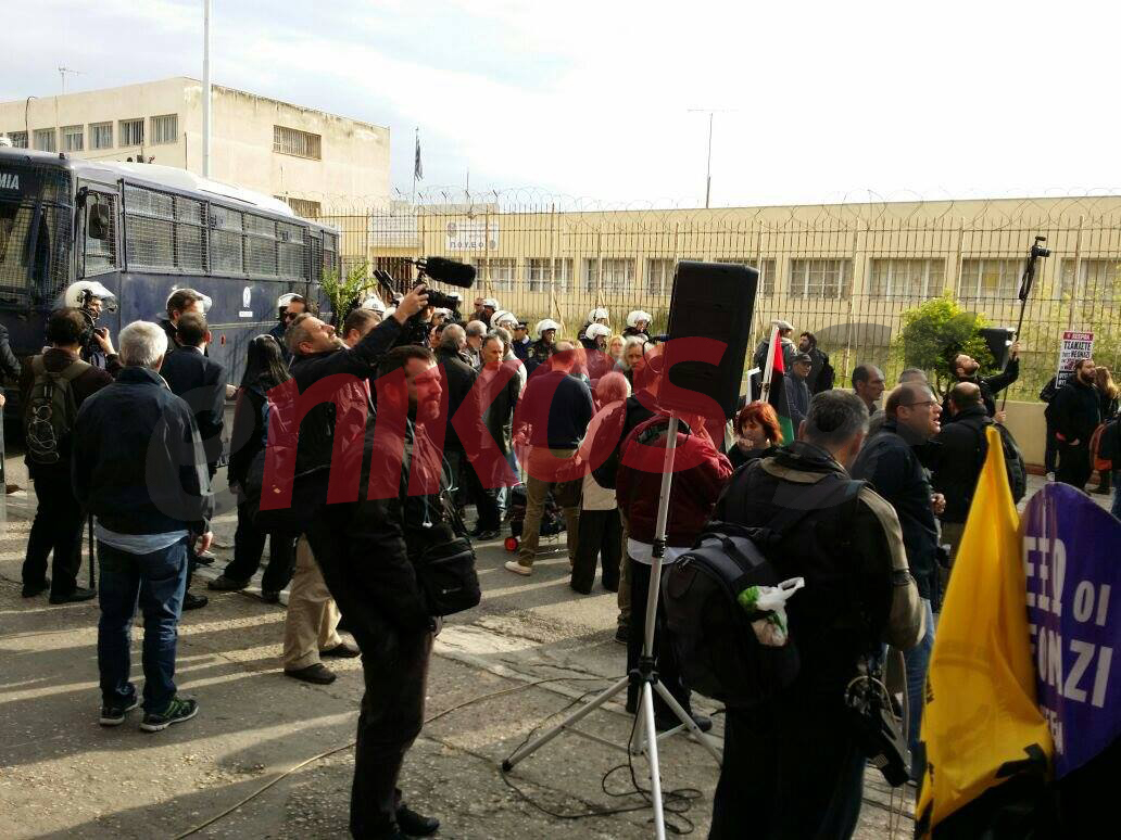 Ολοένα και αυξάνεται ο κόσμος που συγκεντρώνεται έξω από τις φυλακές κορυδαλλού, προκειμένου να διαδηλώσει κατά της Χρυσής Αυγής, την ώρα που αναμένεται η έναρξη της δίκης.