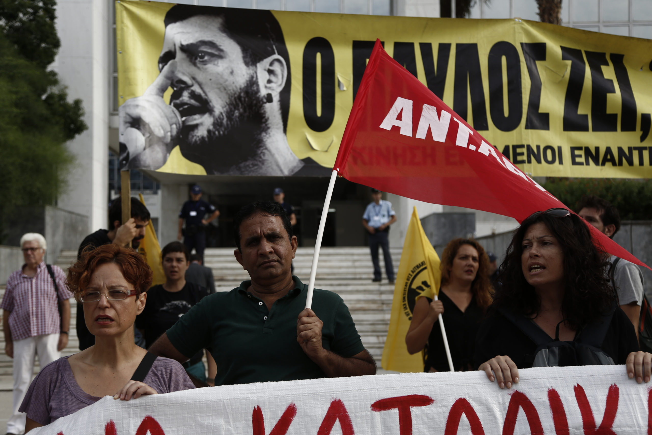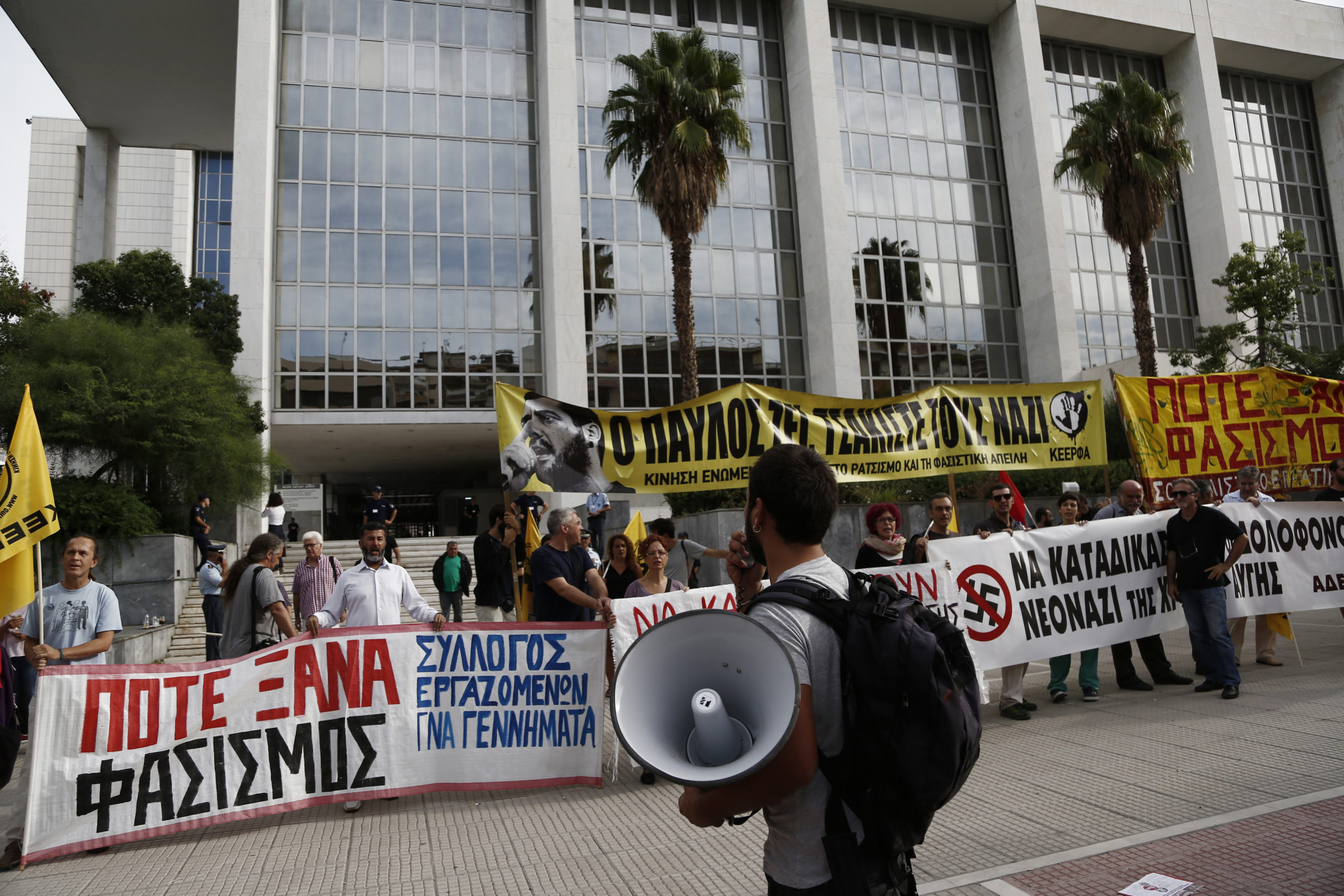 Συγκέντρωση διαμαρτυρίας έξω από το Εφετείο Αθηνών όπου διεξάγεται η δίκη της Χρυσής Αυγής πραγματοποίησαν μέλη αντιφασιστικών οργανώσεων.