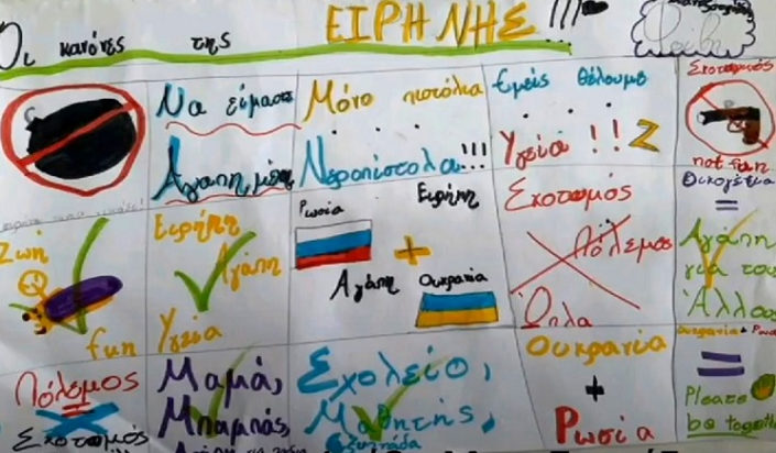 Μια αλήθεια από τα μύχια της ψυχής των παιδιών μας, που συναισθάνονται ότι κάποια άλλα παιδιά, εκεί μακριά στην Ουκρανία έχοντας πόλεμο, δεν βιώνουν τα αγαθά της Ειρήνης!