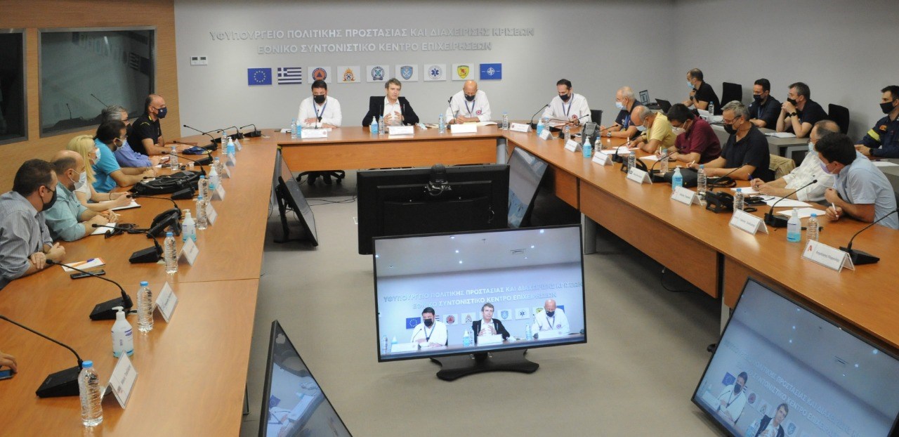 Η συνέντευξη τύπου έγινε παρουσία του Γενικού Γραμματέα Πολιτικής Προστασίας, Βασίλειου Παπαγεωργίου, του Αρχηγού του Πυροσβεστικού Σώματος, Αντιστράτηγου Στέφανου Κολοκούρη και του ο Γενικού Διευθυντή Συντονισμού της Γενικής Γραμματείας Πολιτικής Προστασίας, Φοίβου Θεοδώρου.