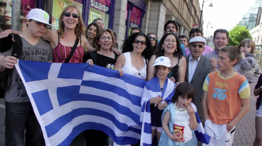 Χορευτική εκδήλωση αλληλεγγύης προς τον Ελληνικό λαό διοργάνωσε στο κέντρο του Δουβλίνου, η Ελληνική Κοινότητα Ιρλανδίας, με αφορμή τα πρόσφατα απαξιωτικά σχόλια του Υπουργού Οικονομικών της Ιρλανδίας για τη χώρα μας.Δεκάδες μέλη της Ελληνικής παροικίας, όπως αναφέρεται σε ανακοίνωση της κοινότητας, συγκεντρώθηκαν και χόρεψαν ελληνικούς παραδοσιακούς χορούς. Παράλληλα, διένειμαν έντυπο υλικό με επίσημη δήλωση της Ελληνικής Κοινότητας Ιρλανδίας, με την οποία καταδικάζεται ο τρόπος που αντιμετωπίζεται η Ελλάδα και οι Έλληνες από τα διεθνή ΜΜΕ.Κατά τη διάρκεια της εκδήλωσης, περαστικοί και φίλοι Ιρλανδοί χόρεψαν μαζί με μέλη της Ελληνικής Κοινότητας, ενώ συζήτησαν μαζί τους για την κατάσταση που επικρατεί στην Ελλάδα.«Η εκδήλωση είχε επιτυχία, καθώς είχαμε μια αξιοπρεπή και όμορφη παρουσία, προσελκύσαμε θετικό ενδιαφέρον προς τη χώρα μας και μεταδώσαμε αγωνιστικό πνεύμα και αίσθημα αλληλεγγύης ανάμεσα στους δύο λαούς», επισημαίνει η Δρ. Θωμαΐς Κακούλη, αντιπρόεδρος της Ελληνικής Κοινότητας Ιρλανδίας. «Ευχαριστούμε τον αδελφό Ιρλανδικό λαό για τη συμπαράστασή του και ευελπιστούμε να συνεχίσουμε τέτοιου είδους πολιτιστικές διαμαρτυρίες στην Ιρλανδία για την ενημέρωση του κόσμου και για την αποκατάσταση του καλού ονόματος των Ελλήνων», πρόσθεσε η κ. Κακούλη.Η Ελληνική Κοινότητα Ιρλανδίας καλεί όλες τις Ελληνικές Κοινότητες της Διασποράς να ακολουθήσουν αυτήν τη προσπάθεια, ώστε να προκαλέσουνε «μια Ελληνική οικουμενική χορευτική επιδημία», όπως τονίζεται στην ανακοίνωση, με σκοπό την αλληλεγγύη προς τον Ελληνικό λαό και τη διατήρηση του καλού ονόματος των Ελλήνων διεθνώς. Πηγή: ΑΜΠΕ