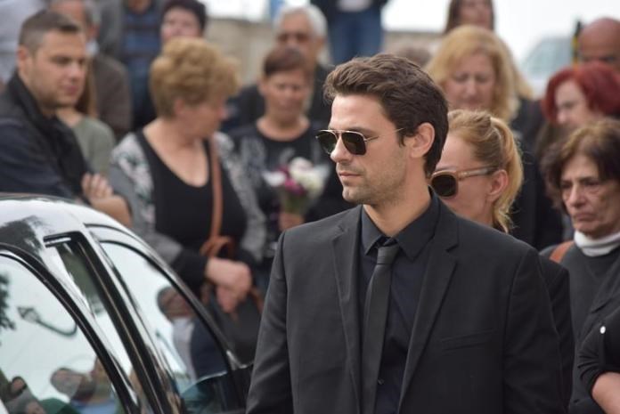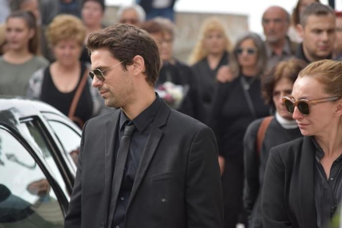 Με δάκρυα στα μάτια του είπε το ύστατο χαίρε ο γιος του, ο διάσημος ηθοποιός, Αποστόλης Τότσικας, μαζί με τη σύζυγό του, τη φωτογράφο Ρούλα Ρέβη.