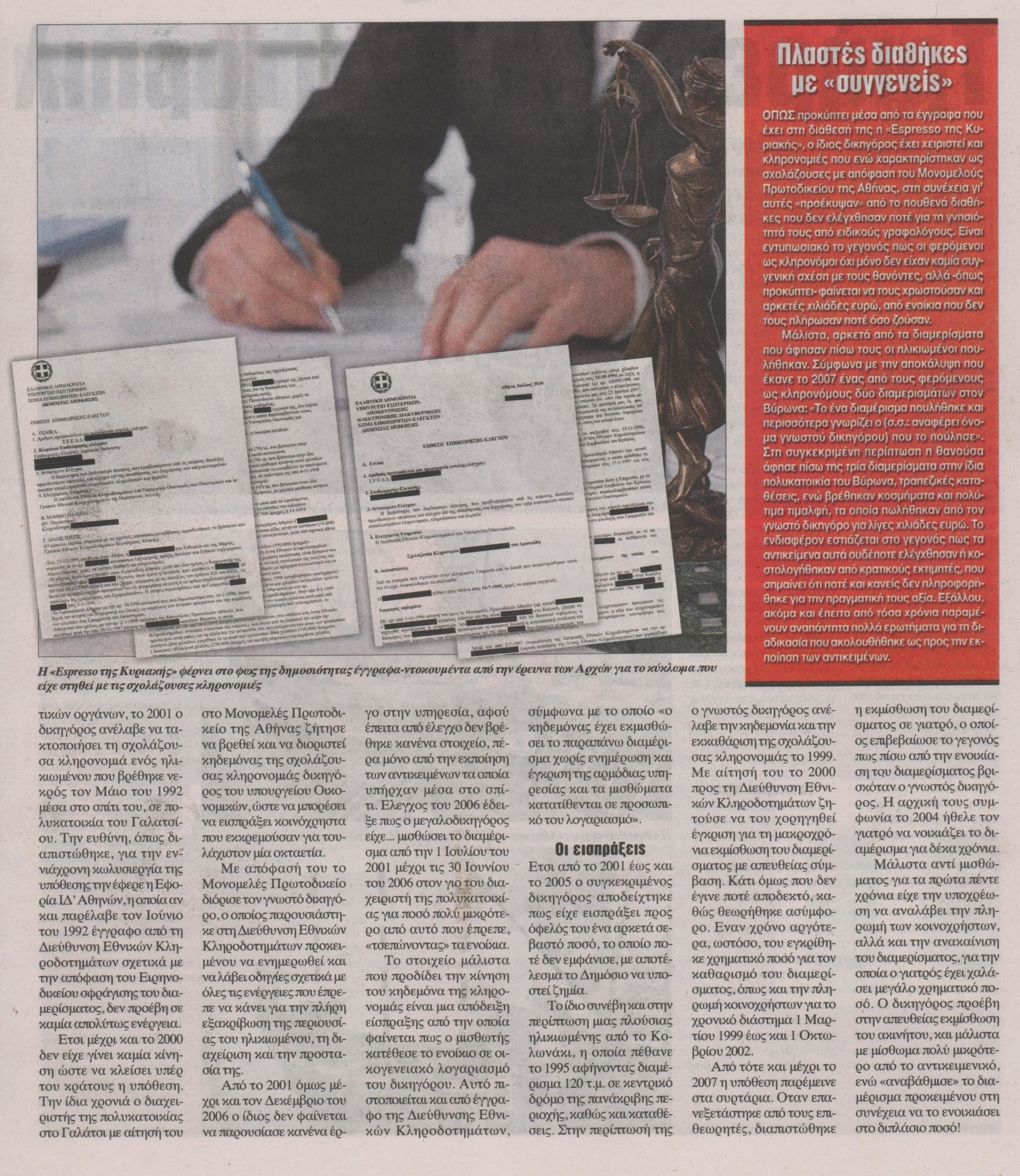 Μεγαλοδικηγόροι, υπάλληλοι, καθώς και κληρονόμοι-μαϊμού, πλούτιζαν -και πλουτίζουν- για πολλά χρόνια παράνομα, καθώς βρήκαν το μηχανισμό -χωρίς να τους αντιληφθεί κανείς- να διαχειρίζονται κινητές και ακίνητες περιουσίες.