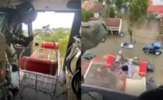 Συνεχίζουν με αμείωτη ένταση οι Ένοπλες Δυνάμεις να απεγκλωβίζουν πολίτες από τις οροφές πλημμυρισμένων κτηρίων.