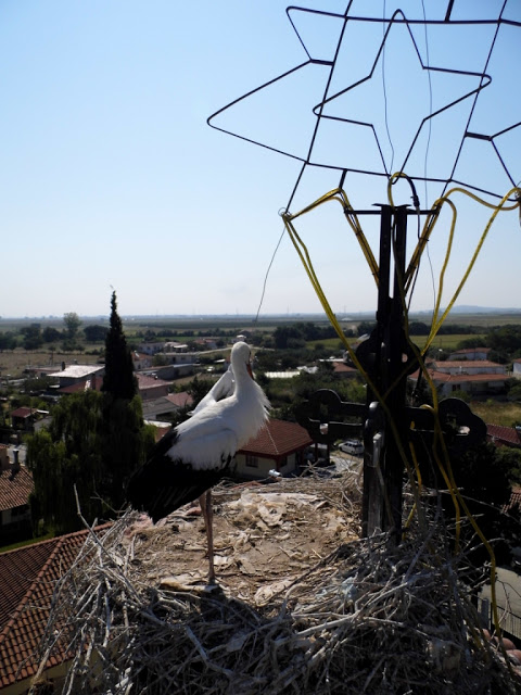 Σε σύρμα αντιστήριξης, το οποίο είχε τοποθετηθεί στον σταυρό καμπαναριού, εγκλωβίστηκε ένας νεαρός λευκός πελαργός στη Γενισέα Ξάνθης.