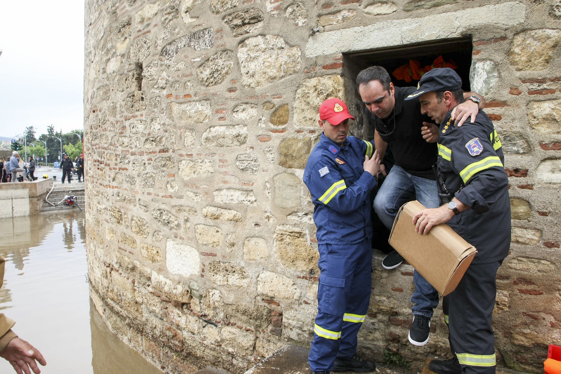 Περίπου 4 ώρες διήρκεσε η περιπέτεια των επισκεπτών του Λευκού Πύργου που εγκλωβίστηκαν στο εσωτερικό του μνημείου λόγω της καταρρακτώδους βροχής.