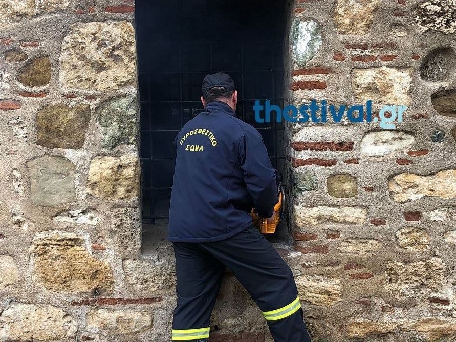 Πυροσβέστες έκοψαν τα κάγκελα από παράθυρο του ισόγειο χώρου του μνημείου και οι επισκέπτες απεγκλωβίστηκαν.