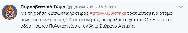 Ολοκληρώθηκε πριν από λίγα λεπτά η επιχείρηση διάσωσης της πυροσβεστικής, του επιβάτη ο οποίος είχε εγκλωβιστεί σε αυτοκίνητο, μετά τη σύγκρουση του οχήματος με τρένο στον ‘Αγιο Στέφανο.