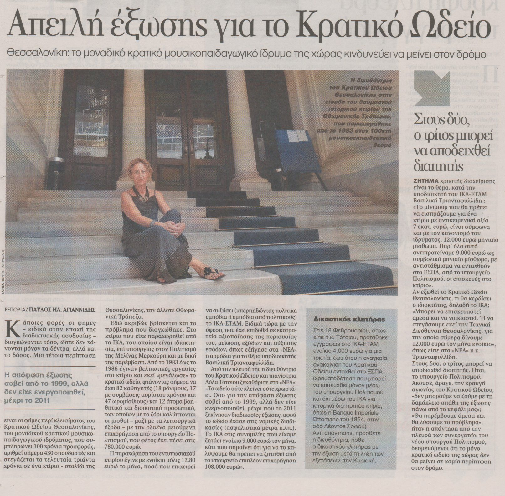 Το μοναδικό κρατικό μουσικοπαιδαγωγικό ίδρυμα της χώρας, το Κρατικό Ωδείο Θεσσαλονίκης, κινδυνεύει να μείνει στον δρόμο.