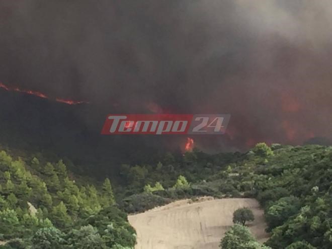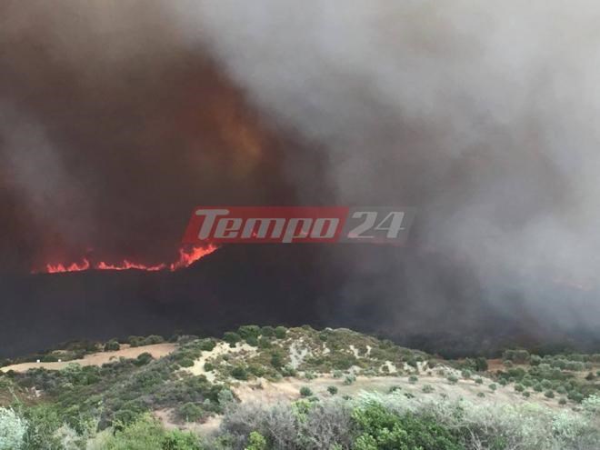 Όπως ανέφερε στο ΑΠΕ-ΜΠΕ ο δήμαρχος Δυτικής Αχαΐας, Χρήστος Νικολάου, οι φλόγες απειλούν τις κοινότητες Άρλα, Ελαιοχώρι, Πετροχώρι και Πλανητερέικα, καθώς και το γυναικείο μοναστήρι της Αγίας Μαρίνας Μαρίτσης.