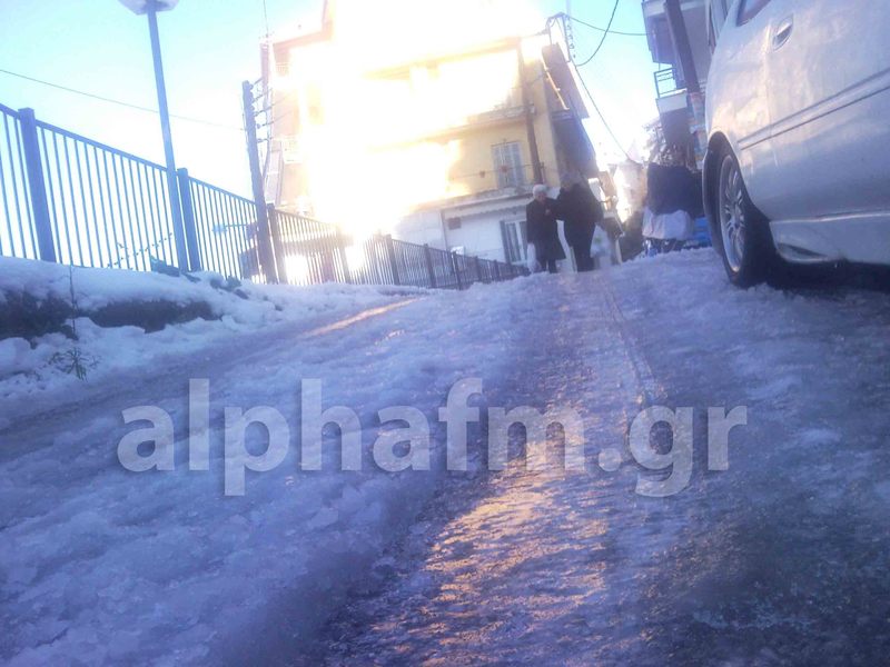 Όπως βλέπετε και από τις φωτογραφίες, κεντρικοί δρόμοι έχουν καλυφθεί από ένα πυκνό στρώμα πάγου γεγονός που δημιουργεί προβλήματα στις μετακινήσεις.