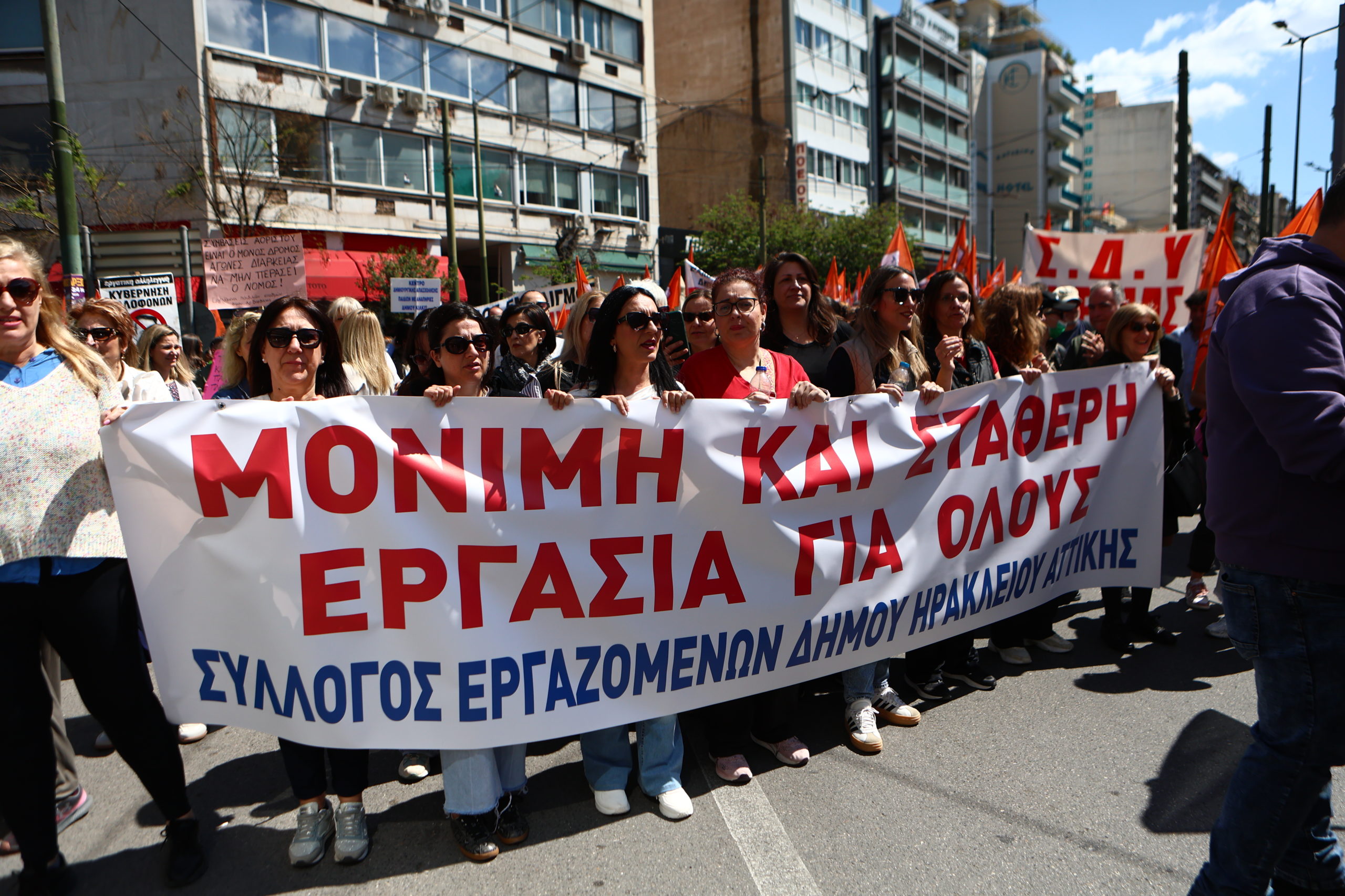 Στους δρόμους βγήκαν σήμερα οι εργαζόμενοι στους δήμους της Αττικής και της Περιφέρειας, οι οποίοι συμμετέχουν στην 24ωρη πανελλαδική απεργία που κήρυξε η Πανελλήνια Ομοσπονδία Εργαζομένων Οργανισμών Τοπικής Αυτοδιοίκησης (ΠΟΕ-ΟΤΑ), με βασικό αίτημα την μονιμοποίηση των εργαζομένων που απασχολούνται επί σειρά ετών με αλλεπάλληλες και επαναλαμβανόμενες συμβάσεις, στις κοινωνικές δομές των δήμων (παιδικοί σταθμοί, ΚΔΑΠ, ΚΔΑΠ-ΜΕΑ, Κέντρα Κοινότητας, κ.α.).