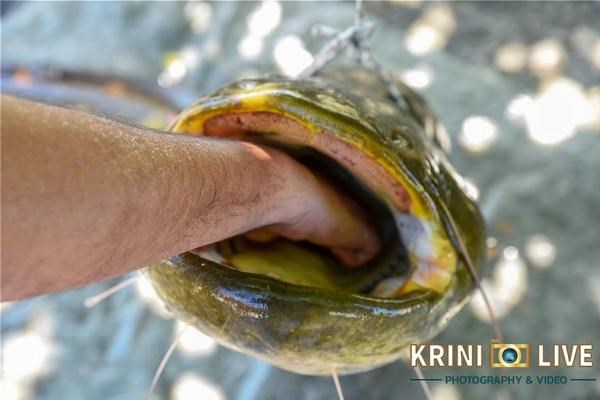 Τρομερή ψαριά έβγαλε ο πατήρ Βασίλειος, εφημέριος του Ιερού Ναού Αγίου Γεωργίου Γεωργανάδων του Δήμου Φαρκαδόνας, από τα νερά του Πηνειού ποταμού στην περιοχή της Πηνειάδας.