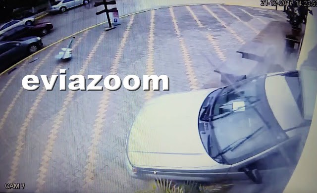 Σοκ προκαλεί το ατύχημα που σημειώθηκε την περασμένη Πέμπτη στα Ψαχνά, όταν ένα τζιπ «μπούκαρε» με την όπισθεν σε κατάστημα αλυσίδας κινητής τηλεφωνίας.