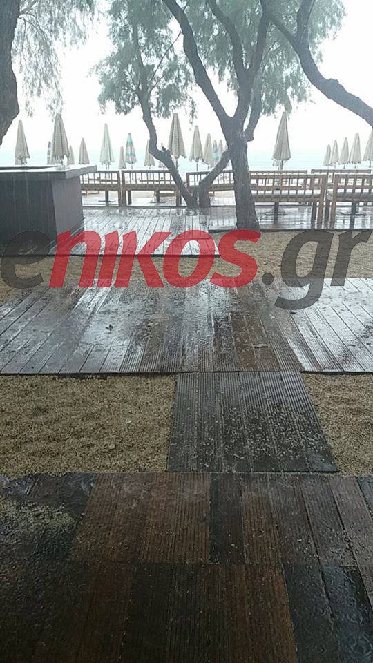 “Καταφύγιο” στο beach bar βρήκαν όσοι είχαν πάει στην παραλία Αλίμου για να απολαύσουν το μπάνιο τους, καθώς άρχισε να βρέχει καταρρακτωδώς.