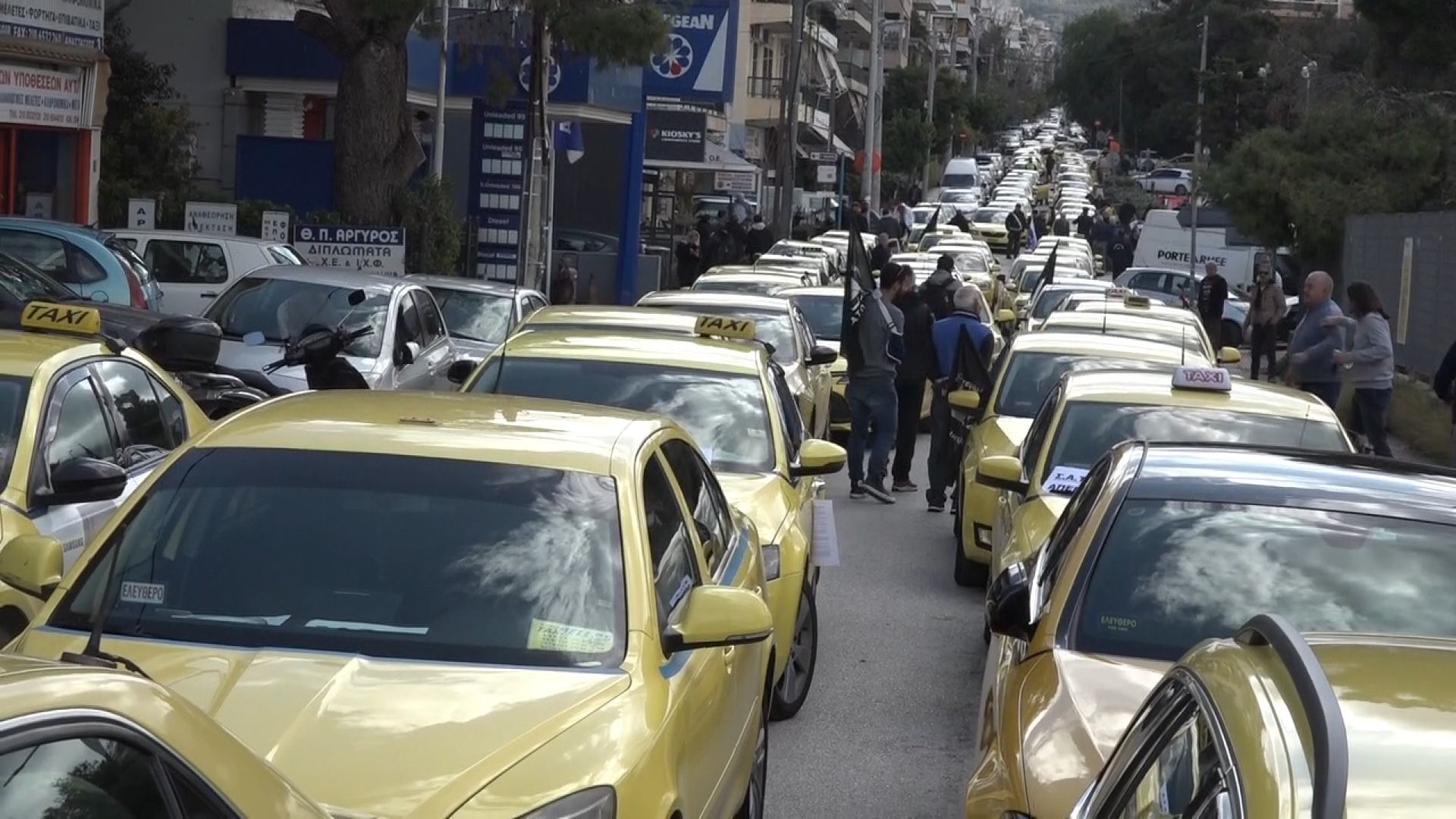 Οδηγοί ταξί πραγματοποίησαν σήμερα (27/2) συγκέντρωση και πορεία διαμαρτυρίας με τα οχήματά τους από το κέντρο της Αθήνας προς το Υπουργείο Υποδομών και Μεταφορών, όπου και συναντήθηκαν με την Υφυπουργό Υποδομών και Μεταφορών, αρμόδια για τις Μεταφορές, Χριστίνα Αλεξοπούλου.