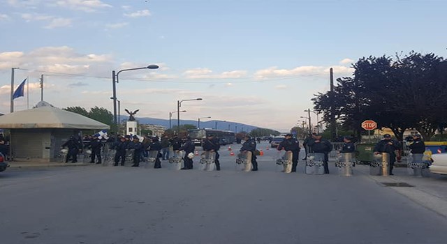 Ωστόσο, σύμφωνα με τα τοπικά Μέσα, Πρωινός Τύπος και Δραμινή, ομάδα ατόμων συγκεντρώθηκε για να εκφράσουν την αντίθεσή τους στη Συμφωνία των Πρεσπών. Τα μέτρα ασφαλείας ήταν δρακόντεια και οι διαδηλωτές δεν κατάφεραν να προσεγγίσουν. Οι συγκεντρωμένοι, πάντως, κρατώντας πανό και σημαίες διαμαρτυρήθηκαν με συνθήματα κατά της Συμφωνίας των Πρεσπών, σε τη διάρκεια της πολιτικής συγκέντρωσης.