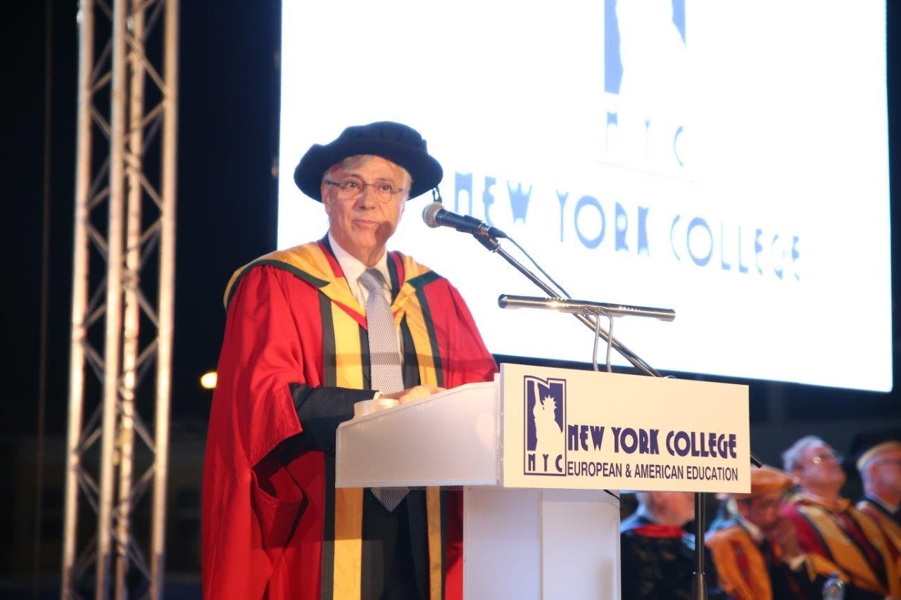 Στην ομιλία του ο Πρόεδρος και Ιδρυτής του Εκπαιδευτικού Ομίλου του New York College, Ηλίας Φούτσης, τόνισε ότι «Ως πτυχιούχοι καταξιωμένων πανεπιστημίων με τα οποία συνεργάζεται το New York College, είστε πολύ καλά εξοπλισμένοι με τις απαραίτητες γνώσεις, εμπειρίες, ηθικές και κοινωνικές αξίες που θα σας επιτρέψουν να αντιμετωπίσετε αποτελεσματικά όποιες δυσκολίες και διλήμματα θα συναντήσετε στον επαγγελματικό και προσωπικό στίβο, για να είστε πάντα οι νικητές» και ευχήθηκε καλή σταδιοδρομία!