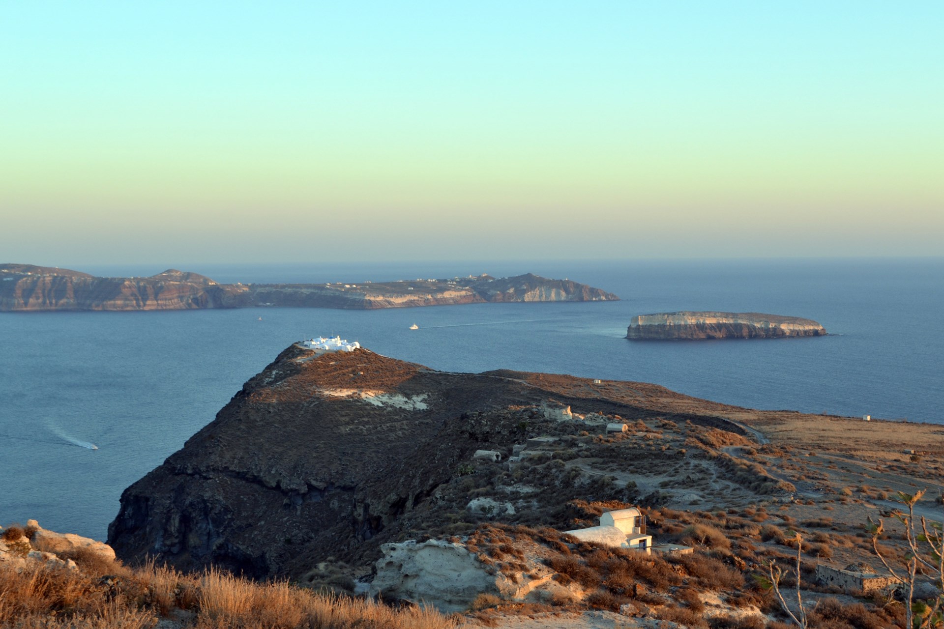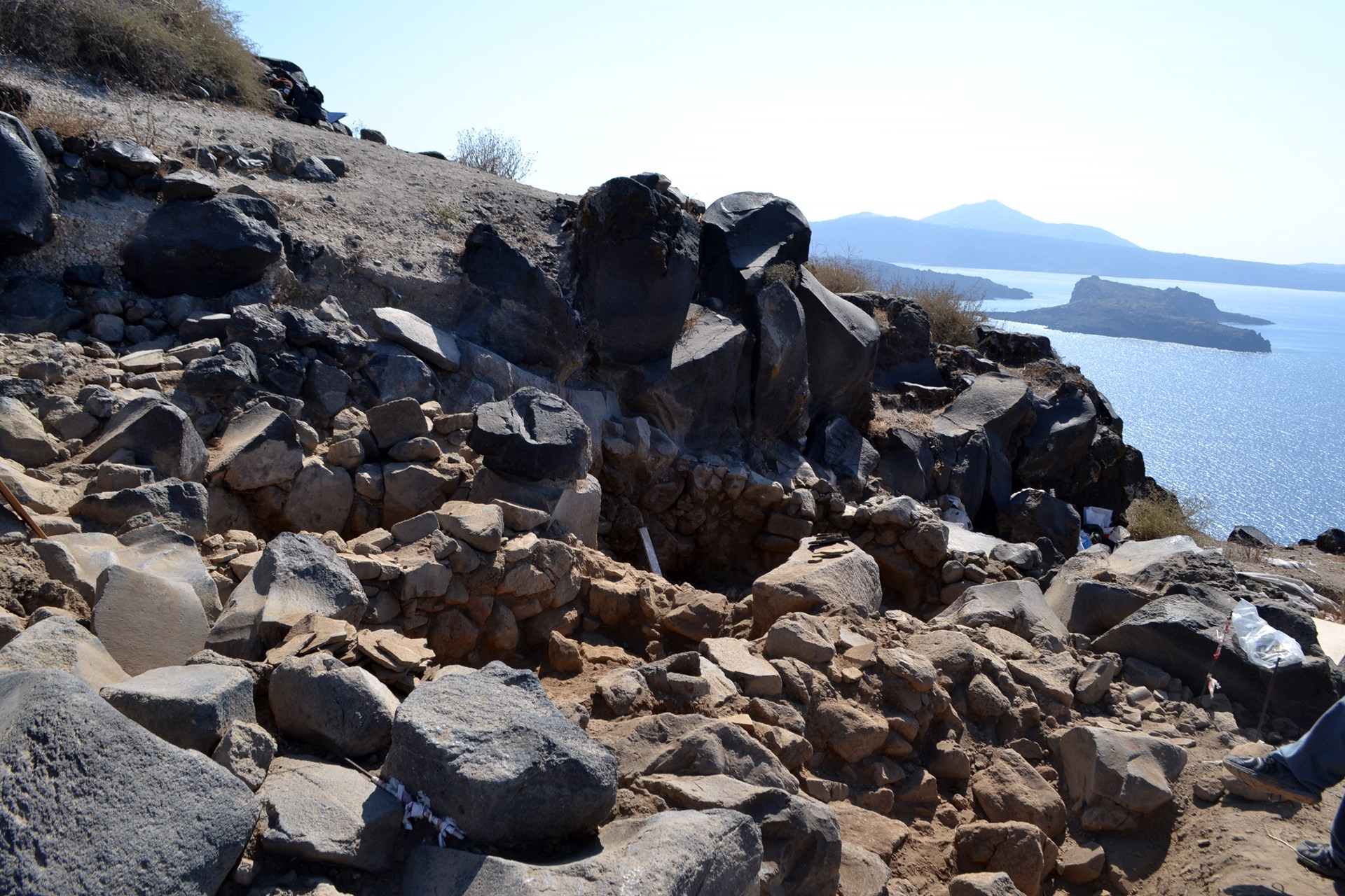 Στη θέση αυτή και σχεδόν σε επαφή με το μοναστήρι, η αρχαιολογική σκαπάνη αποκαλύπτει έναν πρωτοκυκλαδικό και μεσοκυκλαδικό οικισμό της 3ης και των αρχών της 2ης χιλιετίας πΧ, με μέτωπο προς την καλντέρα στα ανατολικά και το Ασπρονήσι στα νότια.