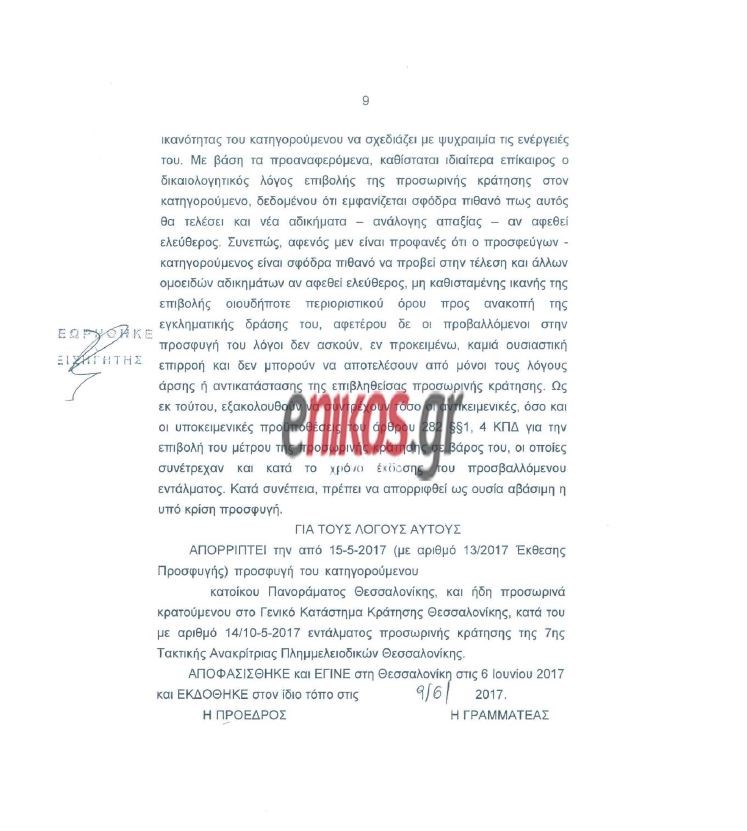 Διαβάστε εδώ ολόκληρο το βούλευμα