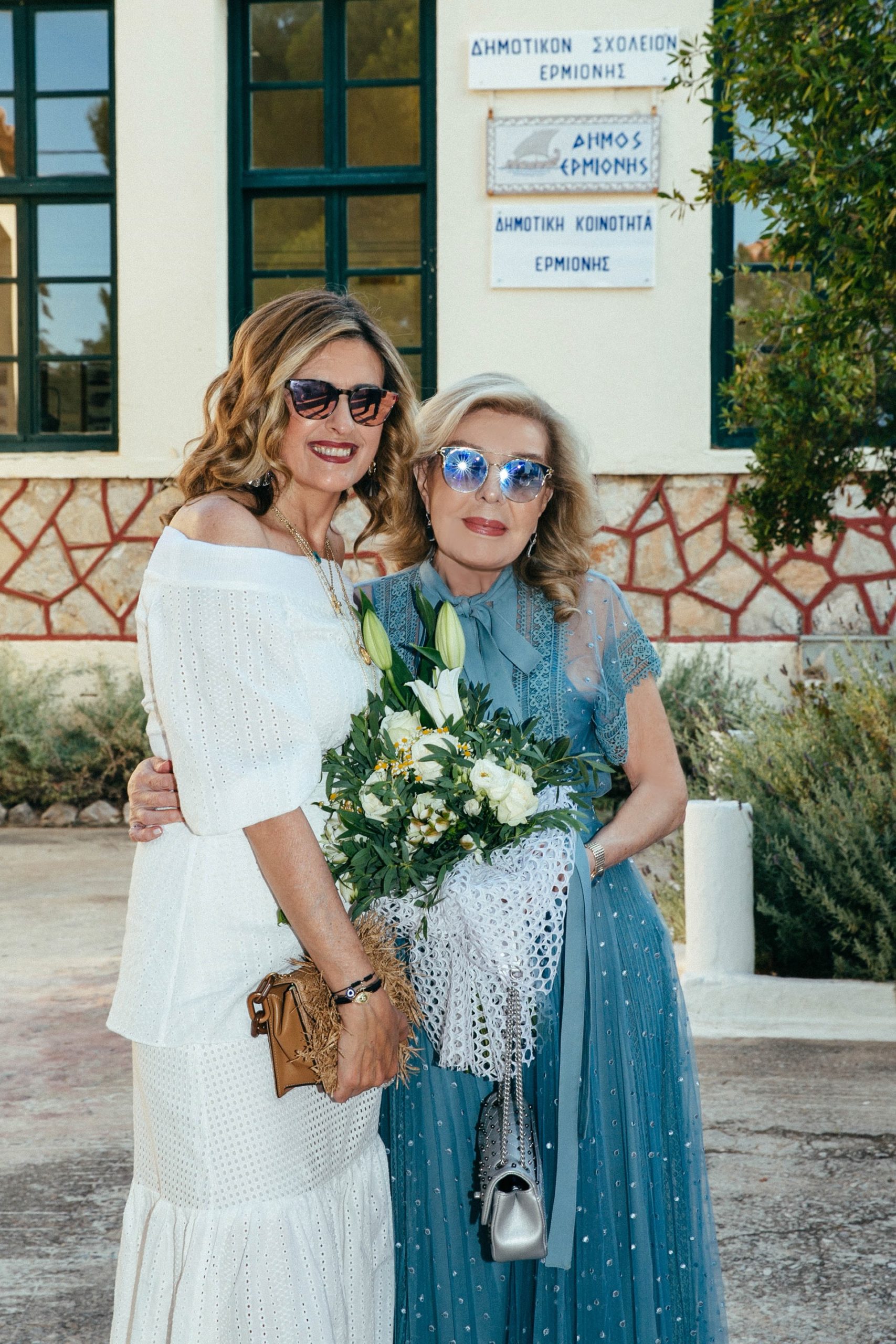 Ο Δήμαρχος Ερμιόνης μαζί με Ερμιονίτισσες υποδέχονται την Νάνα Μούσχουρη και τον σύζυγό της Andre Chapelle