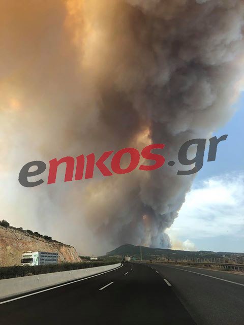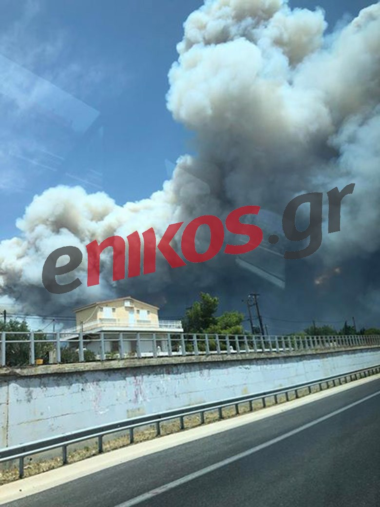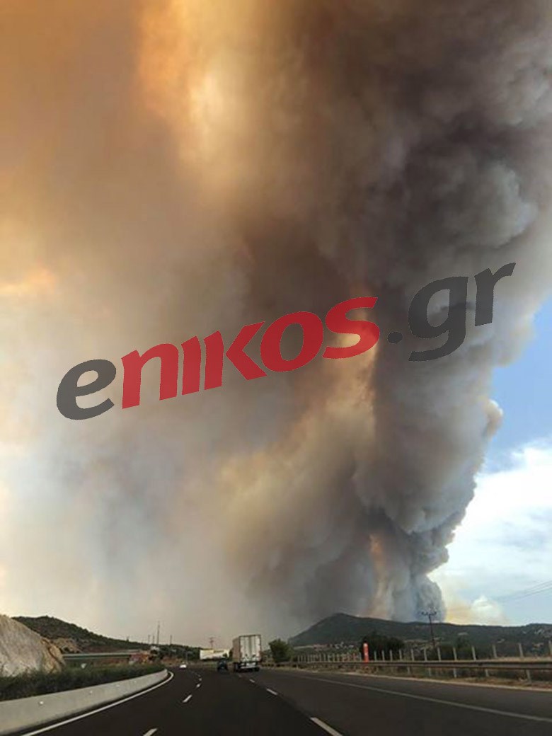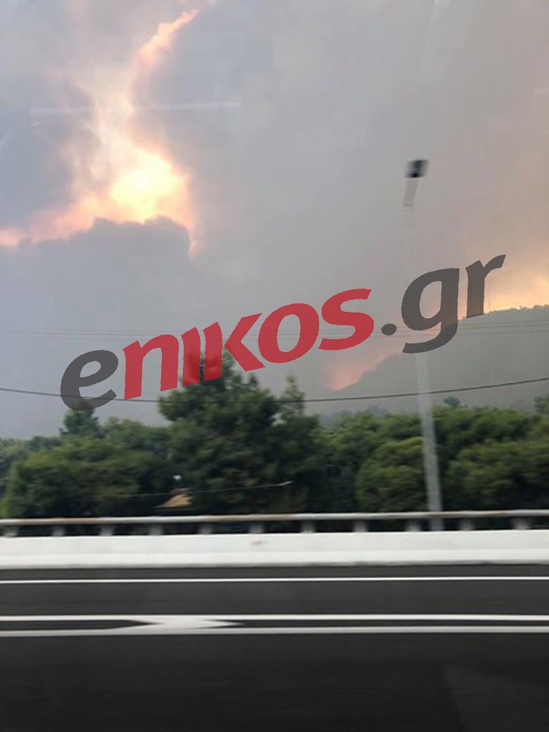 Στις φωτογραφίες που έστειλε αναγνώστης του enikos.gr ο καπνός από τη φωτιά φαίνεται και από την Εθνική Οδό Αθηνών – Κορίνθου.