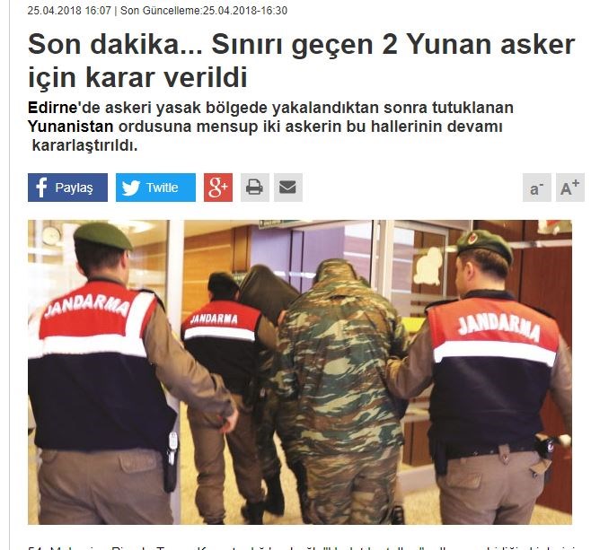 Οι δύο Έλληνες στρατιωτικοί παραμένουν προφυλακισμένοι από τις αρχές Μαρτίου, αναμένοντας να κατατεθεί το κατηγορητήριο από τους εισαγγελείς.