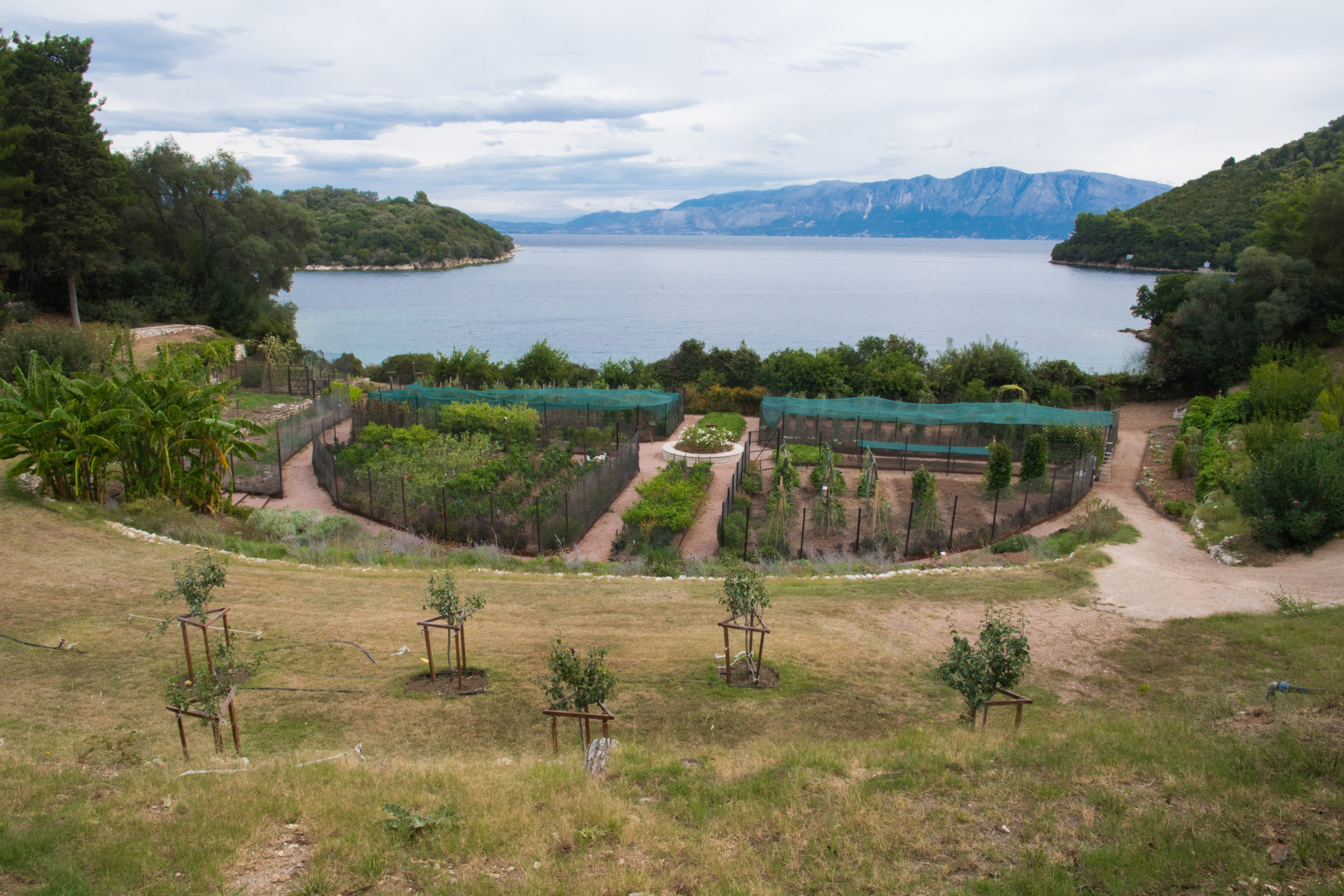 «Ο Ωνάσης είχε μια μεγάλη παραγωγή φρούτων και λαχανικών, την οποία χρησιμοποιούσε για την τροφοδοσία του πλοίου και του νησιού. Με στόχο τη διατήρηση του τοπίου και της παραγωγικότητάς του, έχουν φυτευτεί νέα οπωροφόρα δέντρα και έχει δημιουργηθεί ένας λαχανόκηπος με πάνω από 350 διαφορετικές ποικιλίες λαχανικών και φρούτων (μπανάνες, dragon fruits, passion fruits κ.ά.). Καλλιεργούμε ακόμη και σπάνια είδη που χρησιμοποιούν οι σεφ σε ακριβά εστιατόρια του εξωτερικού», επισημαίνει ο διευθυντής του Σκορπιού σημειώνοντας ότι ο λαχανόκηπος είναι καθαρά οργανικός. «Δε χρησιμοποιούνται χημικά λιπάσματα ή φυτοφάρμακα και στόχος μας πλέον είναι να μεταβούμε από την οργανική στη βιοδυναμική καλλιέργεια. Όσα φρούτα ή λαχανικά σαπίζουν πηγαίνουν για κομποστοποίηση. Η παραγωγή χρησιμοποιείται προς το παρόν για τις ανάγκες της οικογένειας Ριμπολόβλεφ και των εργαζομένων», συνεχίζει ο κ. Λεωνίδου, δηλώνοντας ιδιαίτερα περήφανος για την πρόσφατη βράβευση του ελαιολάδου που παράγεται στον Σκορπιό.