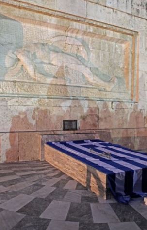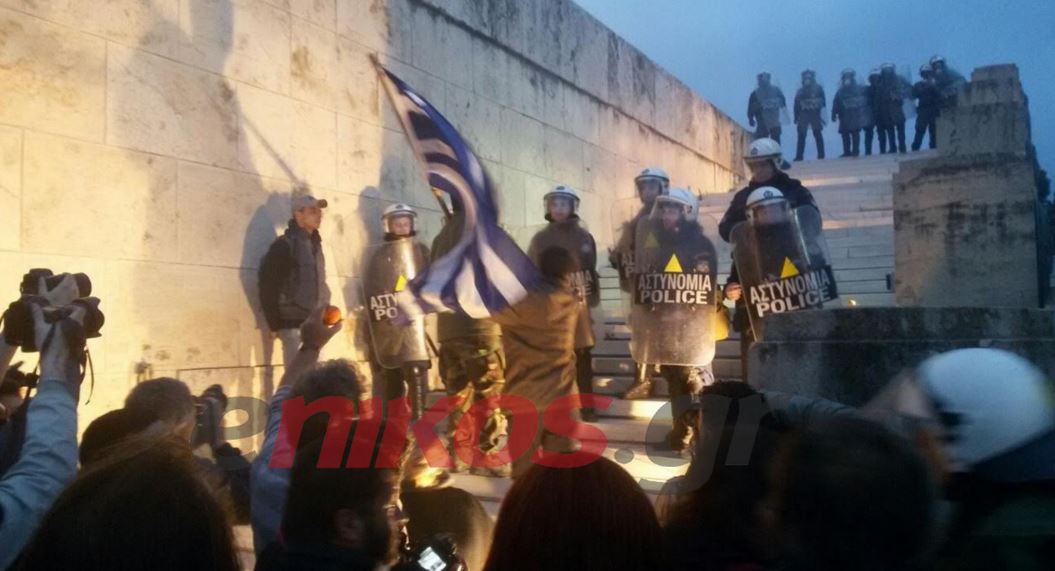 Κάποιοι από αυτούς κάλυψαν με μια ελληνική σημαία το μνημείο του Αγνώστου Στρατιώτη.