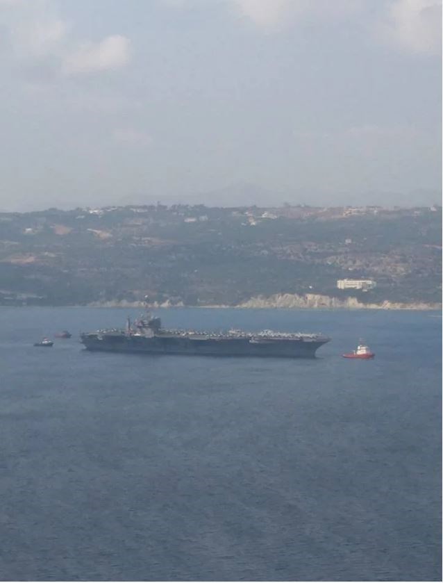 Με την βοήθεια ρυμουλκών «βγήκε» έξω από τον κόλπο της Σούδας για να συνεχίσει την αποστολή του στην περιοχή της Ανατολικής Μεσογείου.