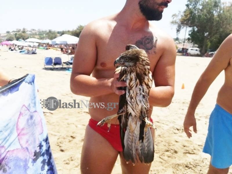 Αμέσως, πήρε τη σανίδα και βούτηξε, ενώ μόλις έφτασε στο σημείο διαπίστωσε πως επέπλεε ένα… γεράκι, το οποίο είχε πέσει στο νερό, κάτω από αδιευκρίνιστες συνθήκες, και δεν μπορούσε να πετάξει. Ο ναυαγοσώστης έβγαλε το γεράκι στην ακτή και ενημέρωσε το δασαρχείο, προκειμένου να του παρασχεθούν οι πρώτες βοήθειες.