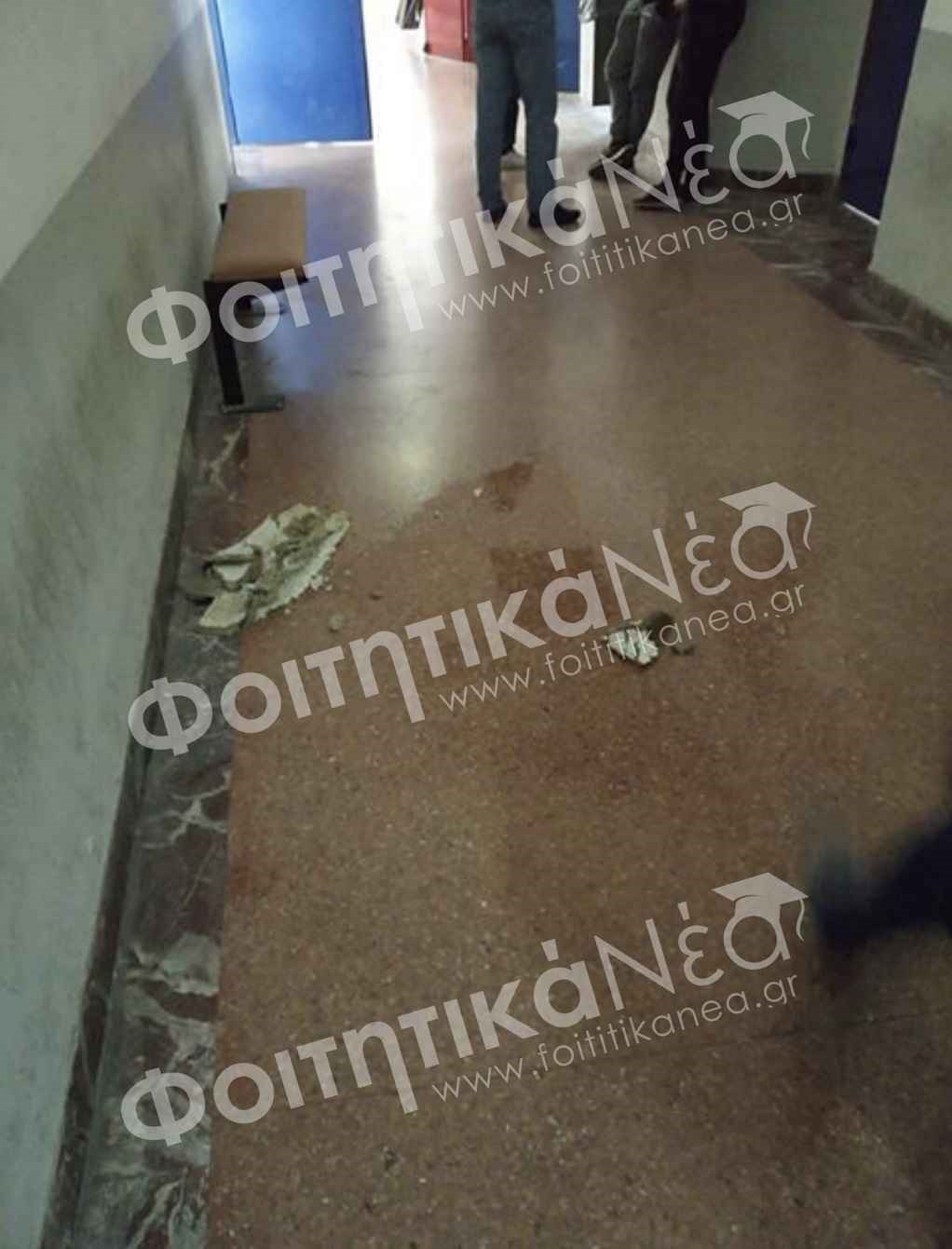 Το περιστατικό κατήγγειλε η φοιτητική παράταξη ΑΡ.ΑΓ.Ε. που συμμετέχει στον Φοιτητικό Σύλλογο Ηλεκτρολόγων-Μηχανολόγων του ΑΠΘ. «Τη Δευτέρα 17/2/20, στο διάδρομο των Μηχανολόγων Μηχανικών του ΑΠΘ, έπεσε κυριολεκτικά ένα κομμάτι από το ταβάνι, αφήνοντας μια ευμεγέθη τρύπα, την ώρα που είχε μάθημα το τρίτο έτος. Το αστείο με τις συνθήκες σπουδών μας στη σχολή πρέπει να τελειώσει», αναφέρει στην ανακοίνωσή της η παράταξη.